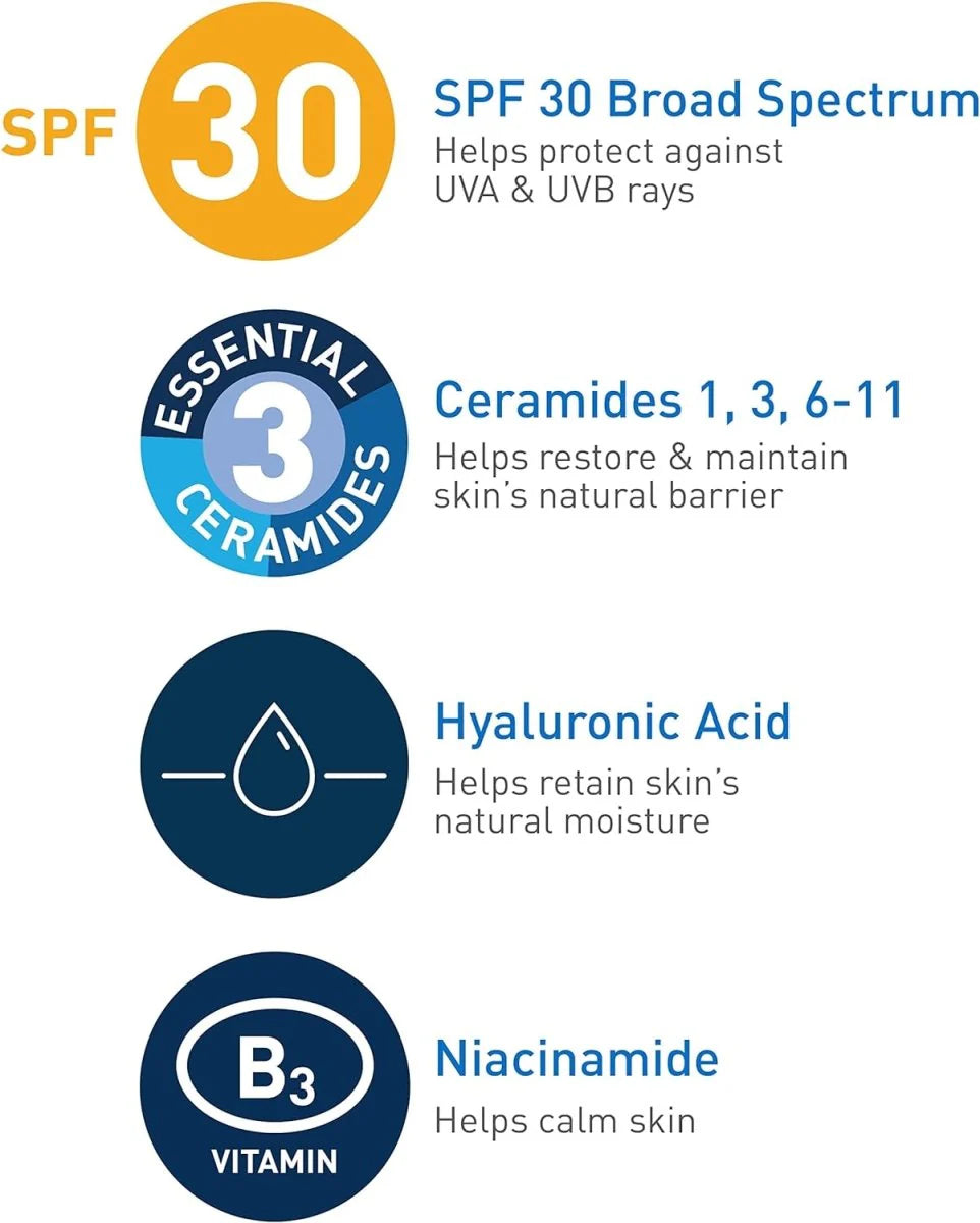 تم تركيبه بخبرة باستخدام عامل حماية من أشعة الشمس SPF 30 والسيراميدات التي تعمل على استعادة الحاجز، يعمل لوشن مرطب الوجه CERAVE AM على حماية بشرتك وترطيبها، مما يجعلها ناعمة وسلسة ومغذية. استمتعي بترطيب طوال اليوم وحماية من الشمس مع هذا اللوشن الخفيف غير الدهني.
