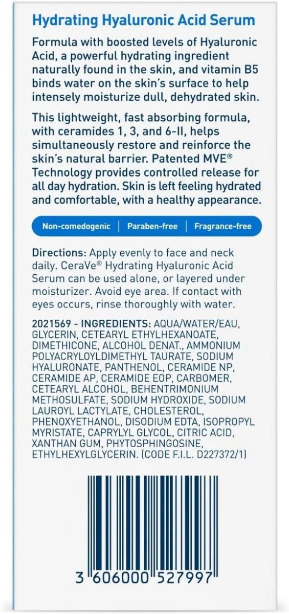 تم تركيب هذا المصل المرطب بحمض الهيالورونيك من CERAVE بخبرة باستخدام حمض الهيالورونيك لتوفير ترطيب مكثف وتعزيز حاجز الرطوبة الطبيعي للبشرة. هذا المصل مناسب لجميع أنواع البشرة، ويترك البشرة تشعر بالامتلاء والترطيب. جرب الفوائد المثبتة لحمض الهيالورونيك للحصول على بشرة ناعمة ومرنة ومتوهجة. كيفية الاستخدام: