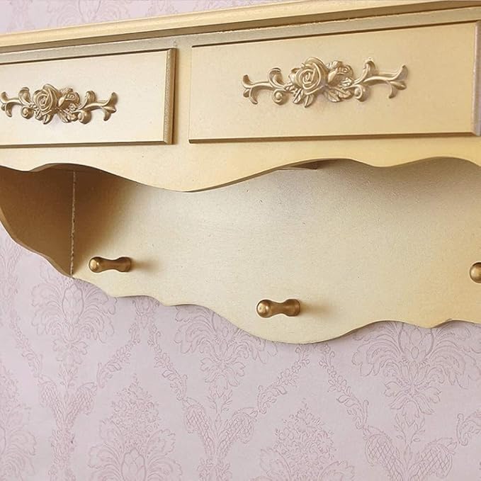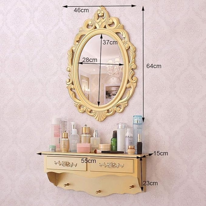 - [Space-Saving Dresser]This wall-mounted vanity mirror with drawers is the ideal option for you. Fixed to the wall by four expansion screws without taking up floor space. Or just place it on the table. 2-in-1 design brings you much convenience.