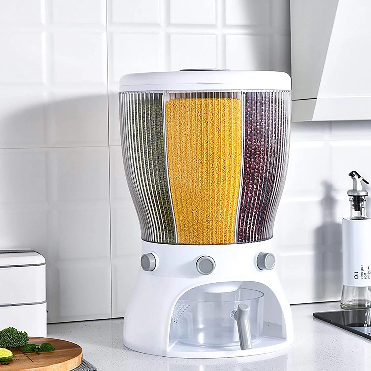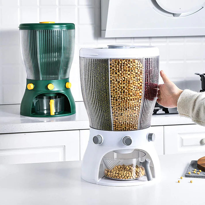 Food Grain Storage Container Large Capacity 4-Grid Rice Dispenser Rotatable Sealed Grain Food Storage Box Rice Bucket Dry Food Fruit Box for Home Kitchen (white)