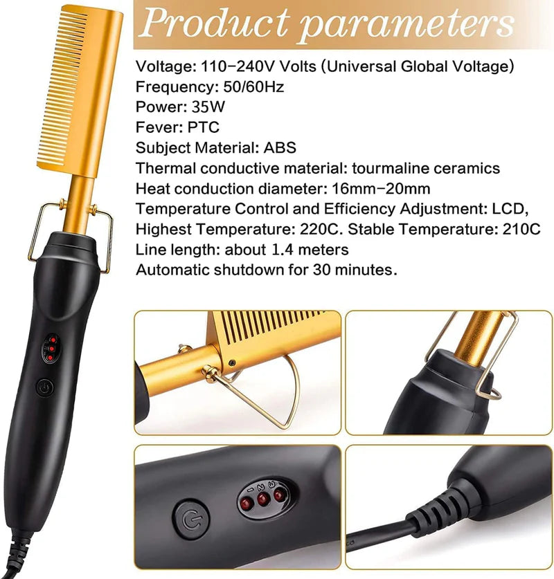 Hot Comb Hair Straightener, 2 in1 Ceramic Comb