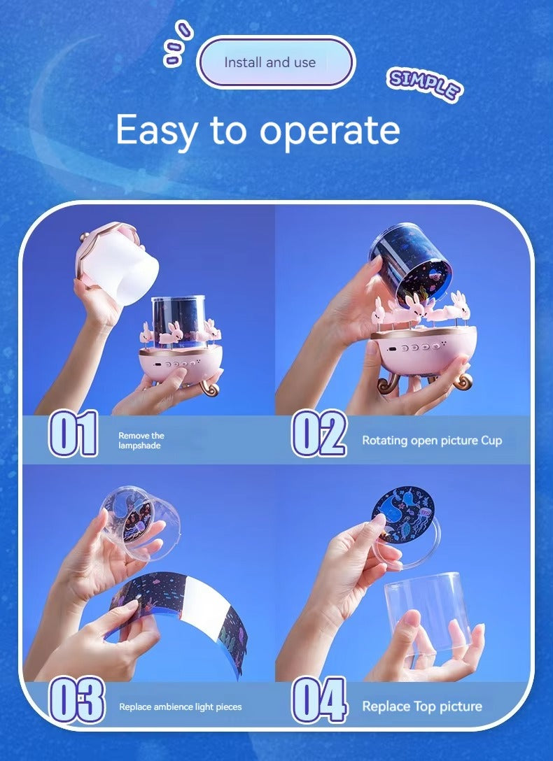 ✨ Projection Lamp: Projects stunning stars, moons, and cute figures onto your walls and ceiling.