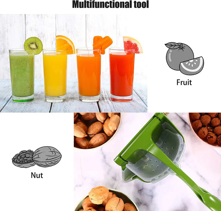 【Multifunctional Tool】Shaoduoli Manual Fruit Juicer can help you squeeze more juice from lemon,orange,grape,lime,pomegranate,watermelon,apple,pear,etc; It can also open the shell of walnut,hazelnut,macadamia,pecan,and other nuts; It is perfect for family or restaurant.