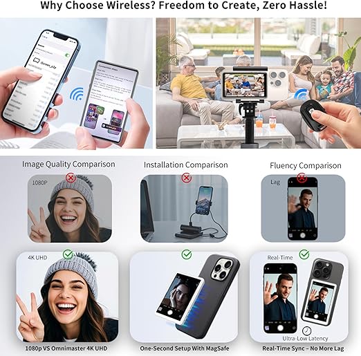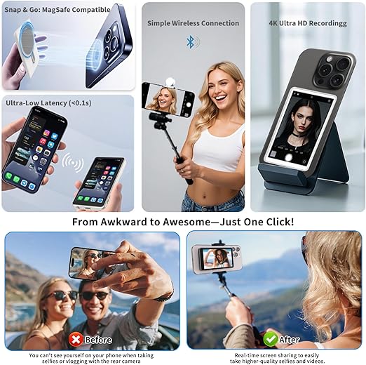- 📸 [Unique Magnetic Design & Real-Time Screen Sharing for Flawless Content Creation] – Revolutionize your selfie, vlogging, and live-streaming experience with our Magnetic Phone Vlog Screen! This cutting-edge device features a secure magnetic attachment system, allowing you to effortlessly mount it onto your smartphone for a crystal-clear, real-time preview. Unlike traditional selfie setups, our screen lets you use your phone’s high-resolution rear camera for ultra-clear shots—no more blurry selfies, awkward angles, or poor lighting. Perfect for TikTok, YouTube, Instagram Reels, and professional live streaming, ensuring you always capture your best moments.
