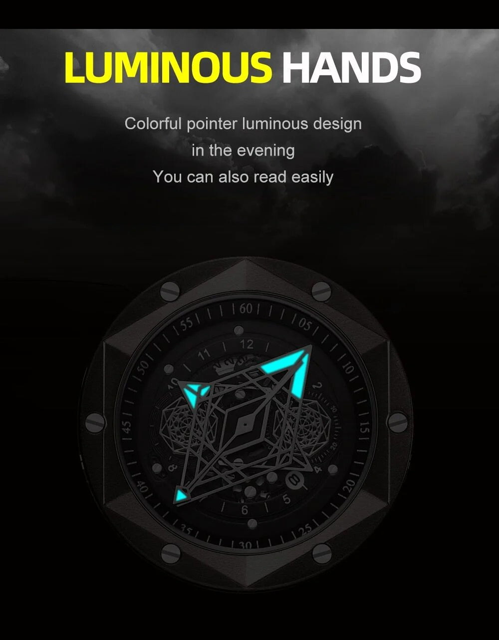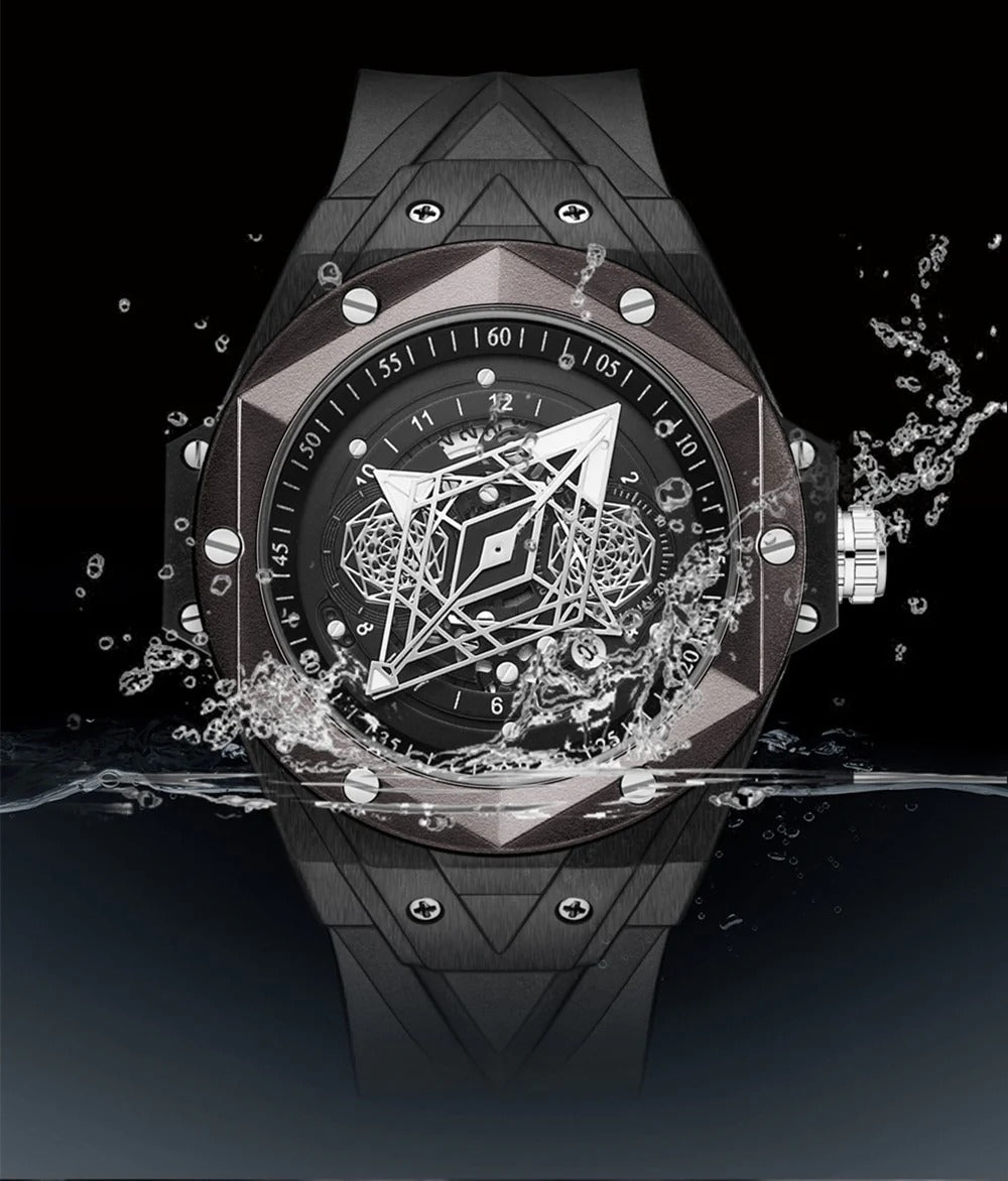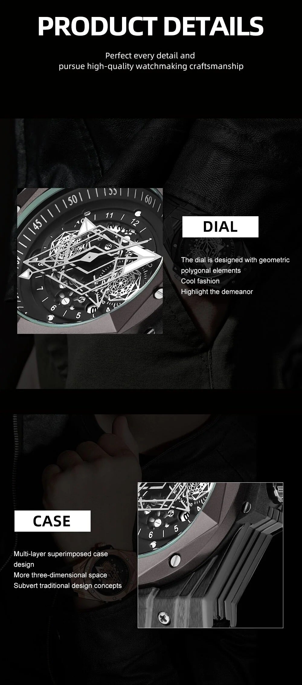 - Unique Design: Geometric skeleton dial with intricate detailing for a futuristic look.