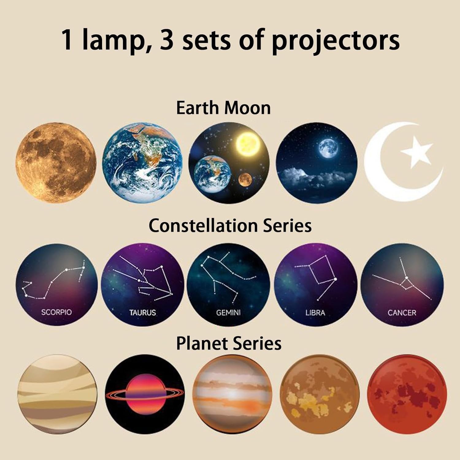 Starry S_ky Projection Pamp, Star Light Projector for Bedroom, Adjustable Ceiling Stars Light Projector, Earth Moon Constellation Series Atmosphere Lamp with 15 Projection Effects, USB Charging
