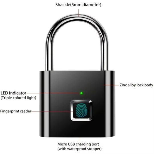 Waterproof Smart Fingerprint Padlock - Keyless Biometric Lock for Gym, School Locker, Luggage & Backpacks - Durable